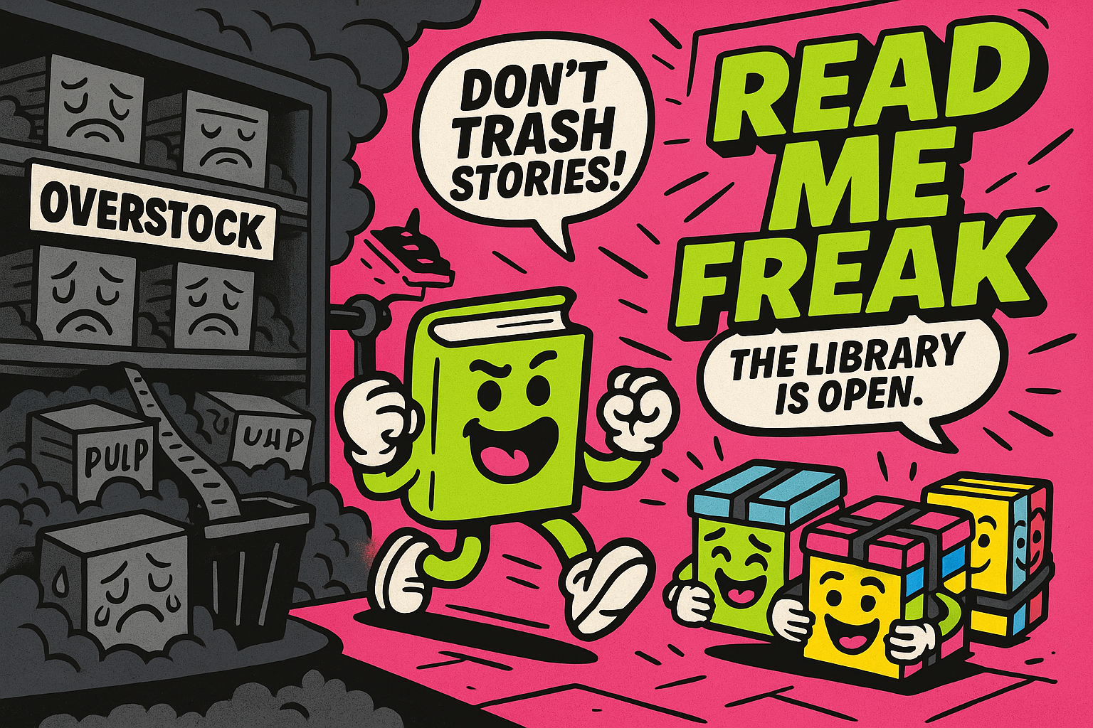 Wir sind ReadMeFreak – die Freaks, die Geschichten retten. Jedes Jahr werden neue Bücher geschreddert. Ungelesen. Ungenutzt. Wir sagen: No way!